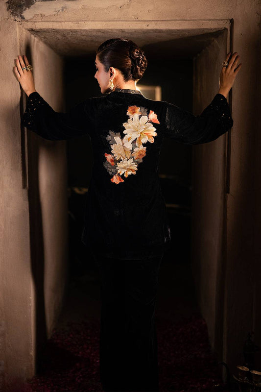 Black Embroidered Raw Silk Short Shirt - Azure | Vogue Formals | Ashfern