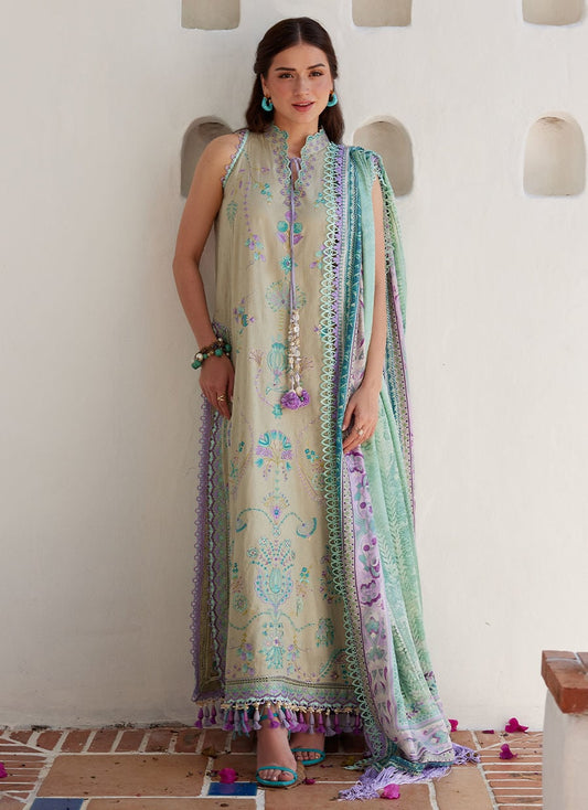 Mint Embroidered Lawn Long Shirt - Farah Talib Aziz | Luxury Lawn 26 | Marcia Mint