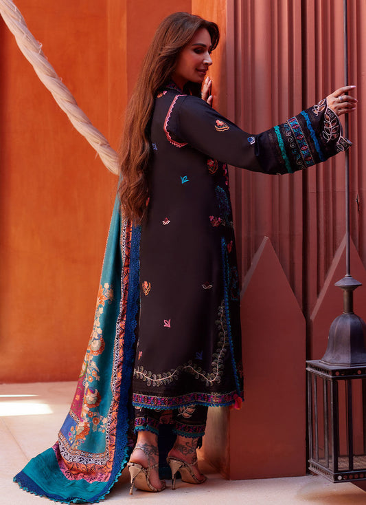 Farah Talib Aziz | Zaza Luxe Pret 24 | CHARR BLUE EMBROIDERED RAW SILK SHIRT AND DUPATTA