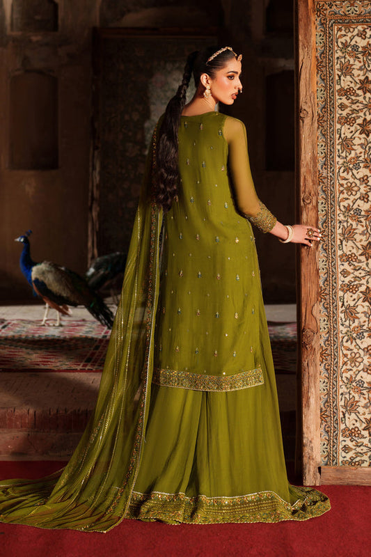 Green Embroidered Cotton Silk Pishwas with Sharara - Asim Jofa | Zari Festive Collection | AJULD-03
