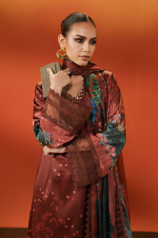 Brown Embroidered Dobby Lawn Shirt with Straight Trouser - Maria B | Eid Collection 2026 | Dw-Ef26-34 Coffee