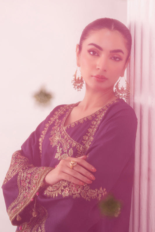 Purple Embroidered Raw Silk Angrakha - Maria B | Eid Collection 2026 | Sf-Ef26-07 Purple