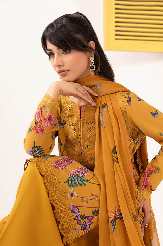 Yellow Embroidered Lawn Shirt with Farshi Shalwar - Maria B | Eid Collection 2026 | Dw-Ef26-54 Yellow