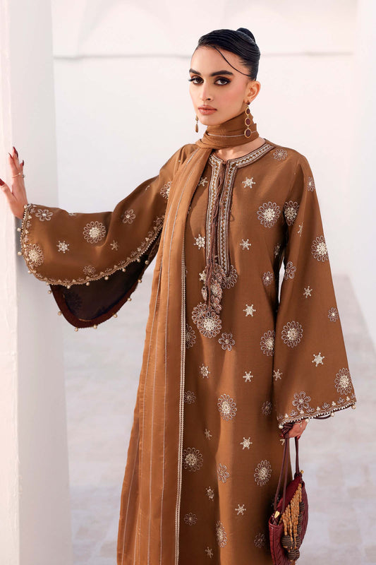 Brown Embroidered Tissue Staple Shirt with Culottes - Maria B | Eid Collection 2026 | Mst-Ef26-08 Brown