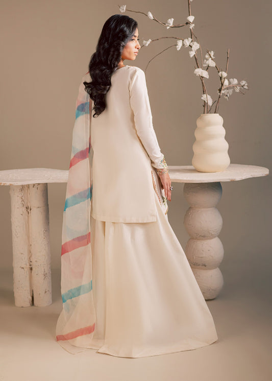 Pearl White Short Shirt with Sharara - Maria Osama Khan | Noir Bliss Luxury Formals | Pearl Whisper