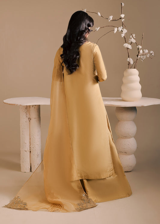 Gold Long Slit Shirt with Sharara - Maria Osama Khan | Noir Bliss Luxury Formals | Golden Ember