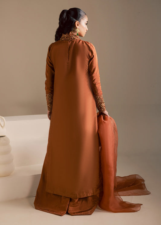 Rust Brown Color Embroidered Grip Long Shirt - Maria Osama Khan | Noir Bliss Luxury Formals | Coco Dusk