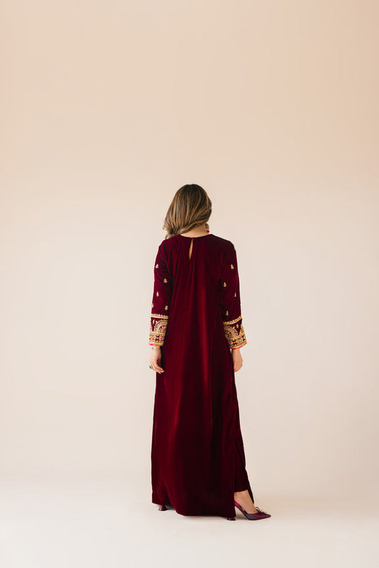 Sammy K | Velvet Festive Edit | Maroon Maxi velvet Outfit