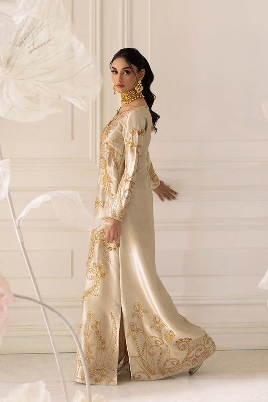 Ivory Embroidered Lama Silk Kaftan - Mina Hassan | Festive Dholki 25 | Aina
