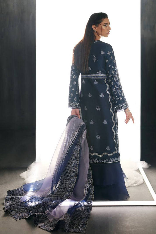 Sky Blue Embroidered Silk Long Shirt With Plazo - Nyra | Luxe Line Pret | Oura