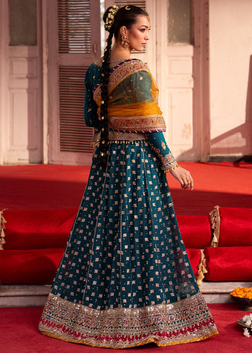 Teal Embroidery Chiffon Lehnga Choli - Haseens | Gehna Formals | Jawhar