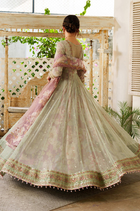 Mint Green Embroidered Net Pishwas - Iznik | Printed Formals | UE-542
