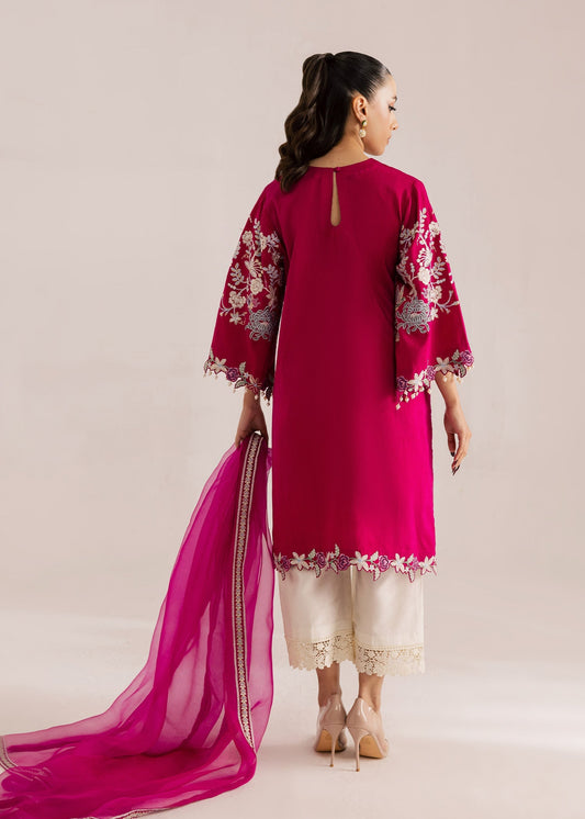Shocking Pink Embroidery Lawn Long Shirt - Aik Atelier | Lawn 26 | LOOK 09
