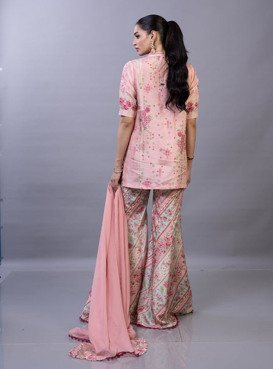 Pink PRINTED Raw Silk SHORT SHIRT WITH PANT - Zainab Chottani | Eid Edit 26 | Zaya