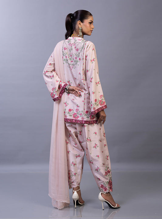 Pink Embroidery Lawn Short Shirt with Shalwar - Sana Safinaz | Luxury Pret | Luxury Lawn Suit SC26MHY303AP3