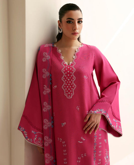 Hot Pink Embroidered Viscose Long Open Shirt - Baroque | Luxury Pret 25 | UF-738