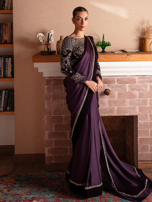 Plum Embroidered Chiffon Saree - Maria B | Soiree Formals 25 | WF-09-01