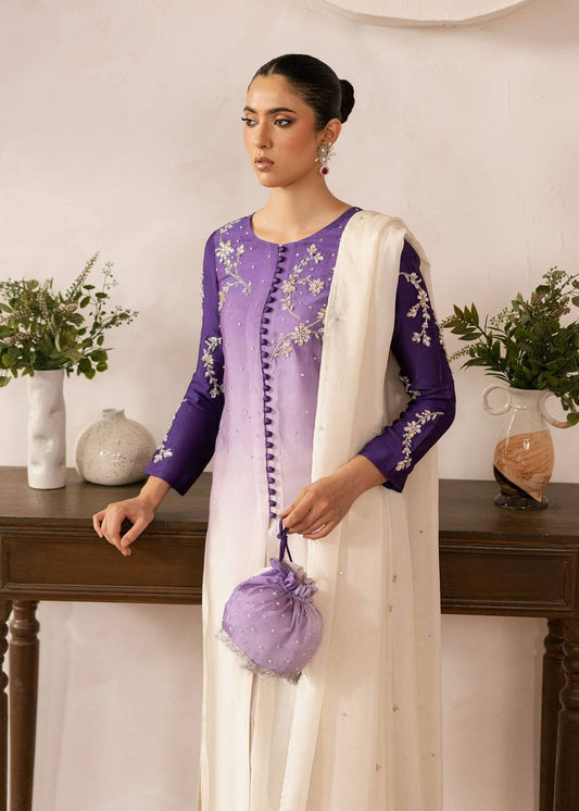 On Eid mornings, the world awakens to vibrant hues, much like Fuchsia Rose. This hot pink outfit combines tissue silk fabrics with hand embroidery and sequin work, complemented by an Organza dupatta. Ideal for those who love bold fashion and want to make a statement during Eid gatherings!