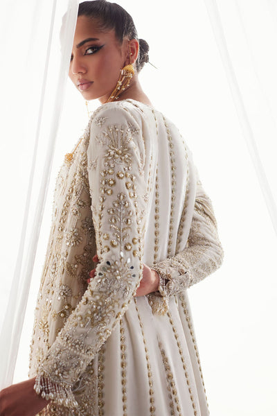 This deep red cutwork shirt showcases a fashionable front-open style, exuding a blend of elegance and modernity. The intricate cutwork details add a unique touch to the shirt, making it a standout piece. It is beautifully complemented by a printed contrast dupatta that enhances the overall appeal with its vibrant patterns. The outfit is perfectly paired with stylish azaar pants, which provide both comfort and a flattering fit. This ensemble is ideal for occasions where you want to make a statement while maintaining a sense of sophistication.