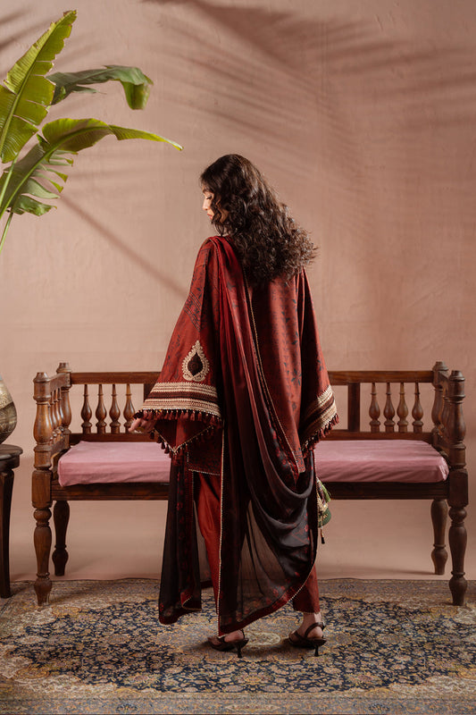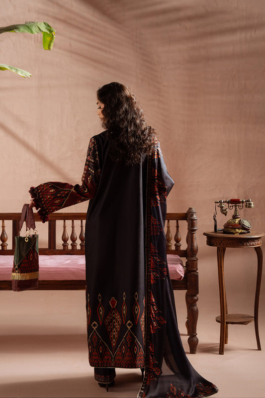 Black Embroidered Khaddar Long Shirt - Saira Rizwan | Winter Khaddar 25 | MAHTAAB-SRW25-01