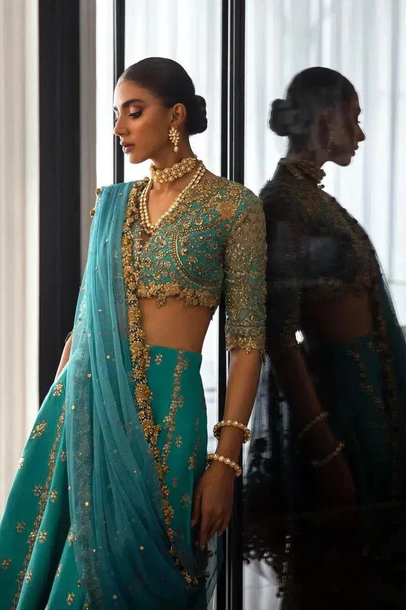 | Lehnga Embroidered Sea Green Raw Silk | 5 Meters |