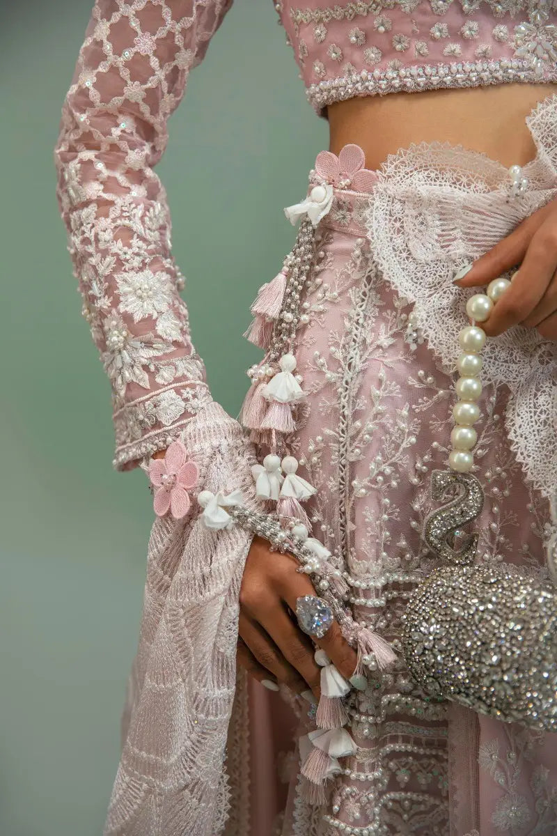 | Body Lace Hand Embellished Soft Pink Organza | 1.32 Meters |